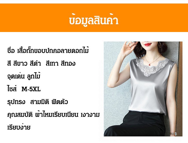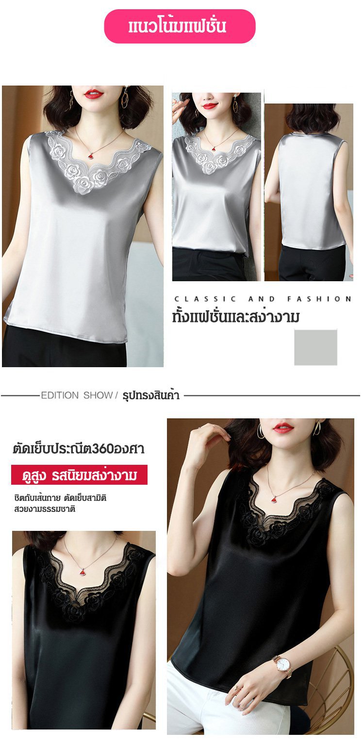 เสื้อกั๊กขอบปกคอลายดอกไม้ ผ้าไหมแท้ สวมใส่เบาและนุ่มเหมือนขนนก ชอบลูกไม้ เซ็กซี่และมีเสน่ห์มาก