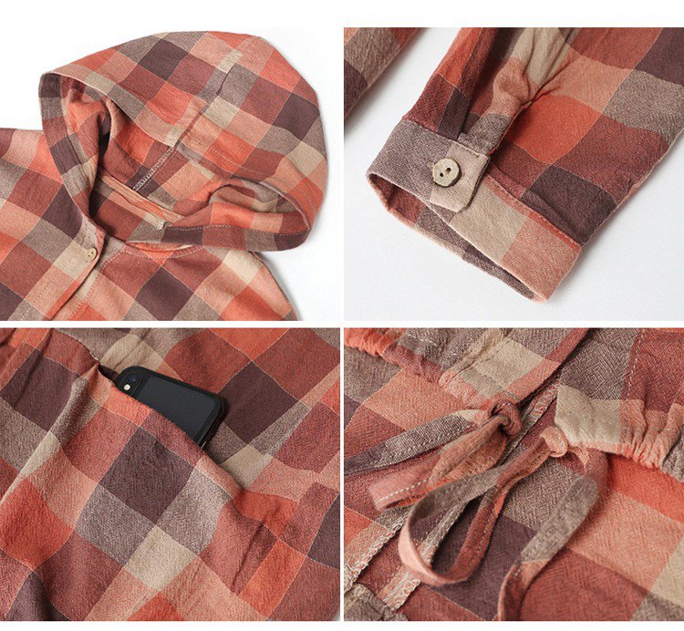 เสื้อมีฮู้ดลำลอง ลายสก๊อต ผ้าฝ้ายแท้